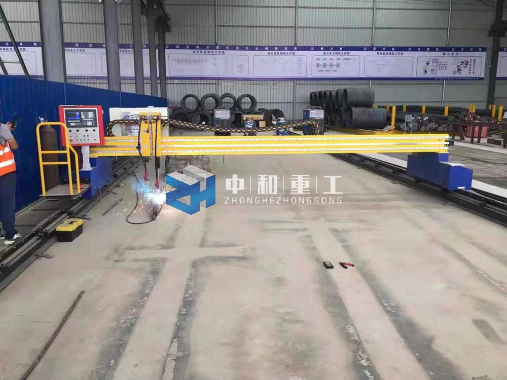3、中和重工在这样的市场环境下研发出国内龙门式盖梁骨架片焊接机器人(型号:ZHGL-5000)