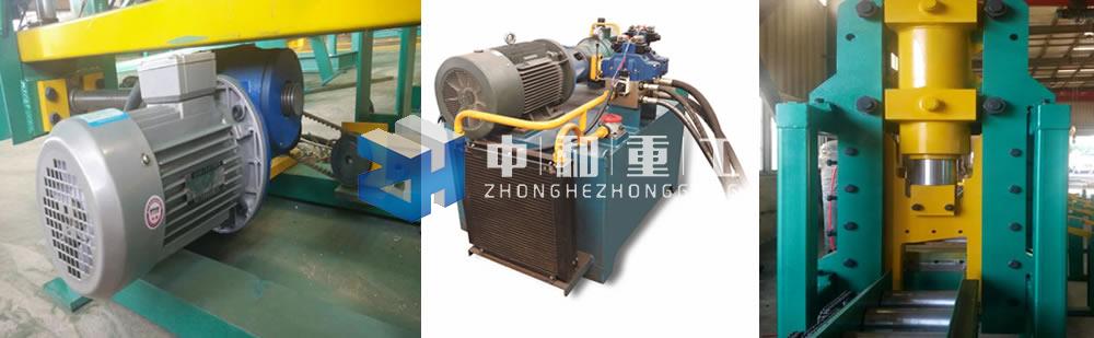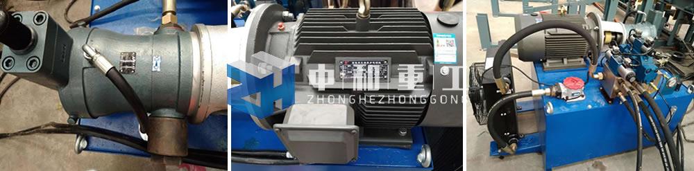 油缸和液压系统都是采用知名品牌力久,动力足,压力强,液压系统的压力泵可以达到32兆帕,正常用也就20兆帕足够了,还有一个微调电机(伺服电机),电机功率是15KW,避免了误差,