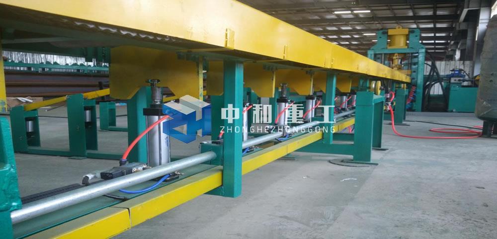 每个平台设有8个滚道轮,伺服电机拉动滚道轮移动,气缸和电子阀支撑挡板和下料板上下工作,都是采用知名品牌神驰,力道足。输送速度更快,上料、下料速度都加快一倍,可连接联动机钢材直接上弯曲中心(上面三图)。
