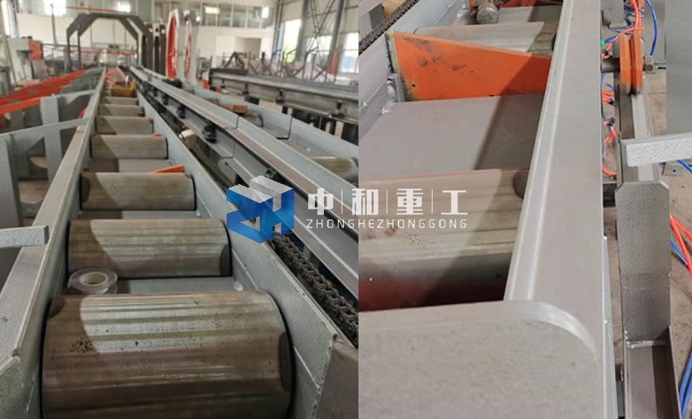 每个挡板的距离是600MM,输送轮移动调节钢筋长度,1-12米任意切。