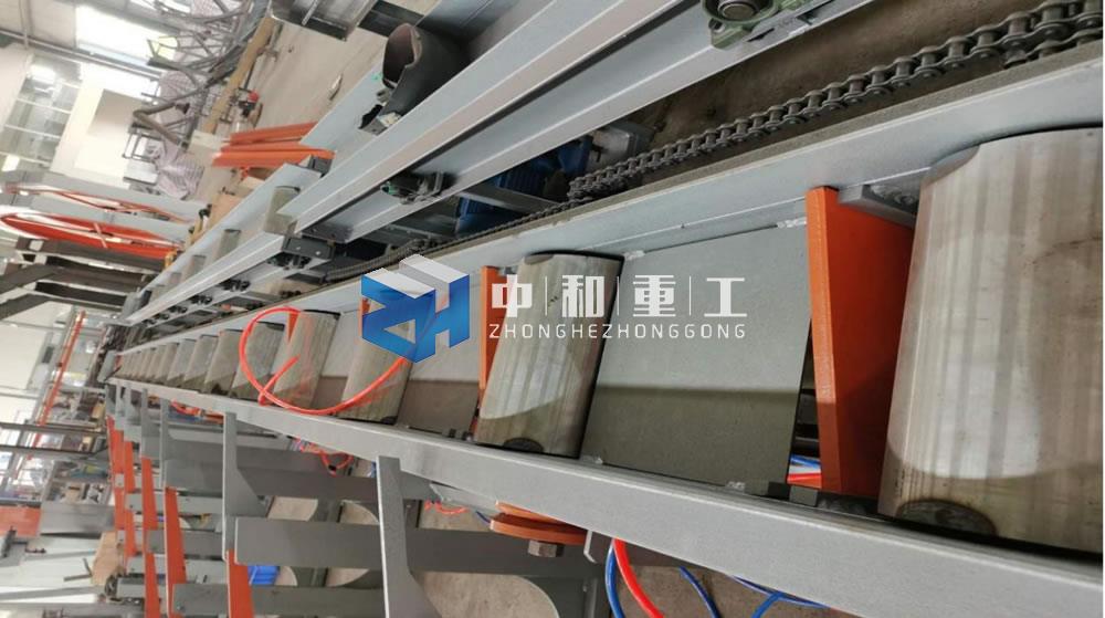 可双侧上料,双侧下料,总长29米,平台加长加宽,送料平台13.6米,下料平台13.4米,