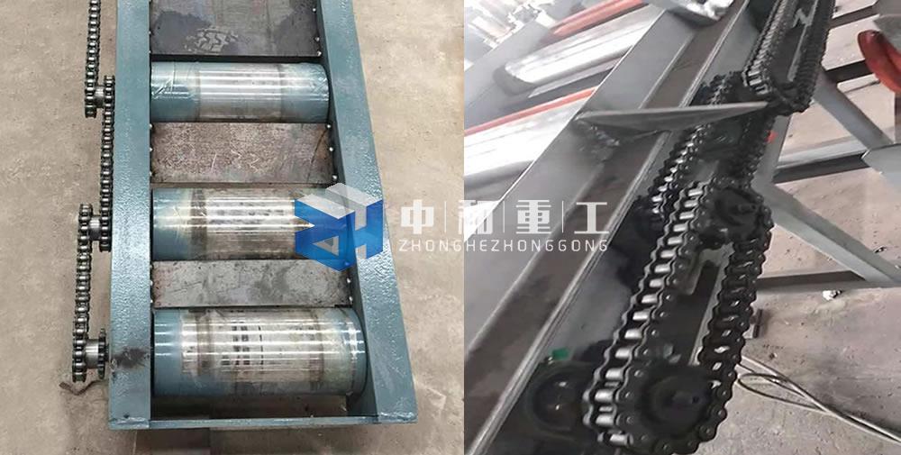 输送链条是12A链条,加粗加大,性能好,灵敏,不易卡死,每个链条都是单个控制输送轮,其他家链条是10A,而且链条是整个控制,反应迟钝,容易卡死。